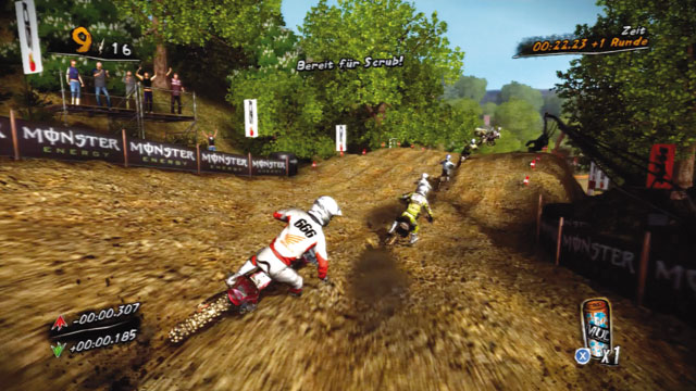 Motocross spielt in der Aufmerksamkeit des deutschen Motorsport-Fans kaum eine Rolle, obwohl wir jüngst mit Ken Roczen sogar seit ewigen Zeiten wieder einen Weltmeister stellen konnten. Roczen und alle anderen Fahrer der offiziellen FIM-Rennserie sind auch in MUD dabei, doch trotz Originallizenz ist die Offroad-Raserei im Arcade-Lager verwurzelt. Denn anspruchsvoll oder gar komplex fällt die Fahrphysik ganz und gar nicht aus: Das Zweirad hat z.B. nur eine Bremse, auf Tuning-Einstellungen wird verzichtet. Rempler führen nur in Ausnahmefällen zu Stürzen und das Kursdesign ist so angelegt, dass Ihr eigentlich nur bei engen Kurven vom Gas gehen müsst. Einziger Kniff ist der sogenannte Scrub: Drückt und haltet Ihr beim Sprung den entsprechenden Knopf im richtigen Moment, folgt nach der Landung ein kurzer Temposchub. So donnert Ihr recht unbeschwert auf einem Dutzend Pisten durch grafisch abwechslungsreiche Umgebungen und tretet wahlweise zur offiziellen Meisterschaft oder einer längeren, mit unaufdringlichen Auflevel-Optionen und gelegentlichen biederen Trickwettbewerben ausgeschmückten Karriere an. Tiefgang kann und will MUD gar nicht bieten, als leicht verdaulicher Offroad-Happen zwischendurch macht es seine Sache aber gut.