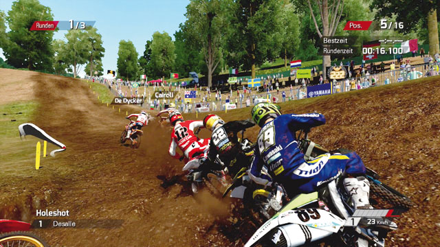Ein ungeschriebenes Lizenz-Rennsportgesetz besagt: Wenn sich sonst niemand mehr dafür interessiert, greift irgendwann unweigerlich Milestone zu. Deshalb landen nach der WRC, den Superbikes und der MotoGP jetzt auch die Motocross-Piloten bei den italienischen PS-Handwerkern. Genau genommen hatten die schon vor zwei Jahren mit MUD einen entsprechenden Titel am Start, doch bis auf die Originalnamen war dort wenig authentisch. Anders nun in MXPG, hier wird penibel darauf Wert gelegt, so nahe wie möglich an der Wirklichkeit zu bleiben. Entsprechend sind nicht nur Regelwerk, Bikes und Fahrer korrekt, diesmal flitzt Ihr auch über die authentisch nachgebauten Pisten. Die sind visuell spürbar weniger abwechslungsreich als die MUD-Strecken, fordern aber mehr, da knifflige Sprungkombinationen auf der Tagesordnung stehen und der meist nicht sonderlich kompakte Untergrund durch Verformung tiefe Spurrillen erhält. Auch die Steuerung bekam ordentlich Anspruch verpasst, mit dem linken Stick lenkt Ihr das Bike, rechts kontrolliert Ihr die Körperhaltung des Piloten kurioserweise neigt dieser bei zu viel Einsatz in engen Kurven aber zur Fallsucht, während es Euch bei Remplern mit anderen Fahrern nur selten aus dem Sattel haut. Das alles ist Milestone-typisch solide, aber technisch und inhaltlich so unspektakulär produziert, dass der Funke nicht vollends überspringt.