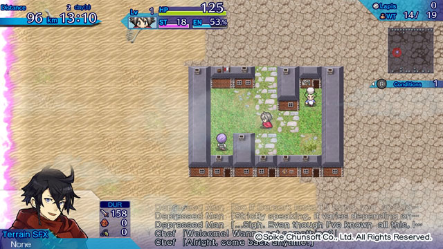 Auf der japanischen Indie-Convention BitSummit entdeckten zwei Produzenten des Mystery Dungeon-Entwicklers Chunsoft ein faszinierendes Indie-Spiel namens One Way Heroics und waren davon so begeistert, dass man direkt mit dem Segen der Macher eine aufgemöbelte Umsetzung unter dem Mystery Dungeon-Label in Angriff nahm. In typischer Roguelike-Manier erkundet der Held Schritt für Schritt ein zufällig generiertes Szenario, sammelt Beute, verhaut Monster und levelt dabei stetig auf. Der Clou dabei: Das Spielfeld scrollt bei jeder Aktion ein Stück weiter und am linken Bildschirmrand droht das magische Licht “Shine Raid”, alles, was es berührt, in Asche zu verwandeln. Eure einzige Hoffnung ist also, immer weiter nach rechts zu laufen, um schließlich dem für die ganze Misere verantwortlichen gefallenen Engel das Handwerk zu legen. Also hechelt Ihr tapfer nach rechts und wägt stets ab, ob sich etwa der Umweg über ein etwas abgelegeneres Dorf lohnt: Dort könnt Ihr Informationen bekommen, gefundene Gegenstände identifizieren lassen und Vorräte auffrischen – gleichzeitig rückt aber das “Shine Raid” näher und näher. Das gibt dem Abenteuer eine ganz eigene Dynamik und hebt es angenehm von klassischen Spielen im Rogue-Stil ab.
