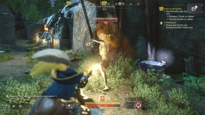 Kommt es zum Schlagabtausch mit Korrumpierten, Bestien, Piraten, Wächtern und anderen Feindtypen, greift ein Action-Adventure-inspiriertes Kampfsystem, bei dem es vor allem auf präzises Zielen, Ausweichen, Blocken und sinnvolle Skillkombinationen ankommt. Letztere sind abhängig von den gerade verwendeten Waffen. Wer etwa viel mit der Muskete hantiert, stuft diese kontinuierlich hoch und schaltet dadurch die Fähigkeit ”Pulverbrand” frei, die fiesen Feuerschaden verursacht. 15 Waffentypen laden zum Experimentieren ein und erlauben sehr unterschiedliche Builds. Ganz ähnlich funktioniert das Upgrade-System im Zusammenhang mit Sammel- und Crafting-Aktivitäten. Wer regelmäßig Eisenerz mit der Spitzhacke abbaut, stuft seinen entsprechenden Skill hoch und kann irgendwann auch Silber, Gold, Alchemiesteine, Sternenmetall usw. fördern. Ergänzend dürft Ihr angeln, Bäume fällen, verschiedenste Pflanzenarten ernten, Tiere häuten, die daraus gewonnenen Materialien weiterverarbeiten und natürlich handeln. Freischaltbare Mounts wie Pferde beschleunigen das Vorankommen innerhalb der Spielwelt und seit der Konsolenversion kann Euer Protagonist endlich auch schwimmen. Wer es sich leisten kann, darf außerdem Immobilien erwerben, diese entsprechend einrichten und – passendes Level vorausgesetzt – an einem halben Dutzend PvE-Aktivitäten teilnehmen (darunter Raids für bis zu zehn Spieler) sowie sein Können in zwei PvP-Modi unter Beweis stellen. In der Arena duellieren sich zwei Teams aus je drei Spielern, während es beim ”Außenpostensturm” darum geht, vorgegebene Orte auf der Karte zu erobern und so lange zu halten, bis der Punktezähler die 1.000er-Marke erreicht hat.