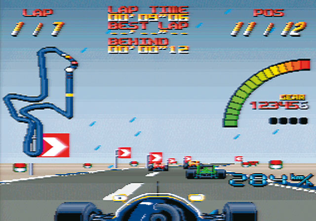 Bevor Ihr in das Rennen um die begehrten Weltmeisterschafts-Punkte einsteigt, könnt Ihr Euch in einer Vielzahl von Menüs austoben: Im “Race Circuit” sucht Ihr Euch eine der 16 internationalen Strecken aus und laßt Euch im Privatjet zum entsprechenden Rennkurs chauffieren. Ihr dürft auch gleich mit der Weltmeisterschaft beginnen, dann bereist Ihr die Strecken in der festgelegten Reihenfolge. Selbst die Qualifikationsrunde könnt Ihr Euch sparen dann startet Ihr jedoch als letzter auf Platz 12 des Feldes. Der Rennverlauf hängt von verschiedenen Faktoren ab: Eure Karriere ist schnell vorbei, wenn Ihr das Handling des Rennwagens nicht perfekt beherrscht. Wer mit dem Fuß in der Ölwanne durch die Kurven heizt, landet in den Strohballen, wer den Wagen des Mitbewerbers freundlich anstupst, verliert wertvolle Zeit. Auch das Wetter spielt mit: Wenn in Südafrika plötzlich eine Regenschauer einsetzt, müßt Ihr an die Box zum Reifenwechsel – es sei denn, Ihr habt ein Faible für lebensgefährliches Aquaplaning. Schon vor dem Rennen erfahrt Ihr Näheres über Zustand, Länge und Verlauf der Strecke sowie die aktuelle Wetterlage. So könnt Ihr Euren Wagen entsprechend abstimmen: Drei verschiedene Heckflügel, Reifen und Getriebe lagern im Ersatzteildepot, wahlweise fahrt Ihr mit manueller oder automatischer Schaltung.