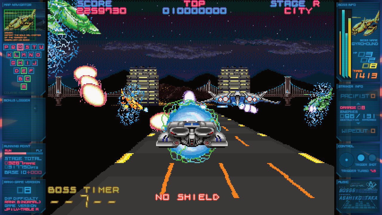 M2 ist in diesen Tagen besonders aktiv: Neben dem fantastischen Gradius Origins bringen die Action-Experten aus Tennodai auch eine Sammlung mit vier Taito-Titeln aus goldenen Arcade-Tagen in die Läden. Mit an Bord sind die martialischen Fadenkreuz-Ballereien Operation Wolf (1987) und Operation Thunderbolt (1988), das stark von ”Aliens” inspirierte Space Gun (1990) und das furiose Action-Rennspiel Night Striker (1989). In ersterem Trio nehmt Ihr Gegner aus der Ego-Perspektive aufs Korn und versucht, Zivilistentreffer zu vermeiden. In Night Striker donnert Ihr mit Eurem Flugauto durch eine futuristische Stadt und schießt fiese Terroristen in Stücke. Die Progression orientiert sich an der Baumstruktur der Darius-Spiele, für den richtigen Ton sorgt Taitos kultiges Zuntata-Team. Die originellen Steuerungsmethoden der Originalspiele – fest montierte Plastikwaffen oder ein eleganter Flightstick – werden auf diverse Arten für die Switch adaptiert. Natürlich könnt Ihr alle vier Spiele klassisch per Analogstick steuern, aber bei den Fadenkreuz-Shootern auch per Bewegungssteuerung zielen, was sich ziemlich gut anfühlt. Und noch besser: Eine USB-Maus dürft Ihr ebenfalls anschließen, die Maus-Funktion der Switch 2 wird in der getesteten Version dagegen leider (bislang?) nicht unterstützt. Night Striker bietet derweil die Möglichkeit, ein hochkant gehaltenes Joy-Con wie einen Analogstick zu nutzen – davon waren wir aber in der Praxis wenig begeistert. Schade zudem für alle drei potenziellen Besitzer des USB-Cyber-Sticks hierzulande: Der wird leider nur von der PC-Version unterstützt, nicht aber auf der Switch.