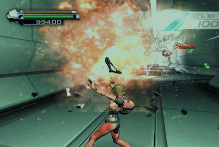 Weil Rache bekanntlich süß ist, stolziert Eure Schutzbefohlene mit einem rabiaten Hightech-Anzug herum: Das hautenge Kleidchen schützt nicht nur seine coole Trägerin, sondern verschießt zudem brutzelnde Laser-Salven. Letztgenannte werdet Ihr bitter benötigen, denn ungezählte Metallmonster trachten Frau Schneider nach dem Leben. Doch egal, ob nun kriechende Robo-Spinnen, waffenstarrende Panzerfahrzeuge oder fiese Tretminen – alle Widersacher verfügen über individuelle Schwachstellen bzw. Angriffs-Schemata. Ergo belauert Ihr das Stahlvolk zumeist aus sicherer Entfernung und genießt die Vorzüge von Vanessas Akrobatik: Via Schultertasten schlagen Cube-Söldner seitliche Räder, um so den anschwirrenden Geschossen auszuweichen – flinke Sprünge gehören freilich ebenso zum Helden-Repertoire.