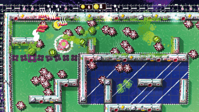 Als Weltraum-Wutz wollt Ihr die Verheiratungspläne Eures Tortenvaters durchkreuzen, indem Ihr bei einem Wettkampf durch Arenen wuselt und dabei Tennisbälle verspeist. Klingt bizarr? Ist es auch, die Pixel-Optik und das Drumherum legen da sogar noch eine Schippe drauf.
