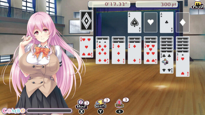 Der nächste Streich: Nach Qix– und Shanghai-Kopie sowie Texas Hold’em versucht Ihr Euch an der wohl klassischsten Solitaire-Variante, wie man sie auch von Windows & Co. kennt, während diverse Anime-Mädels Euch verhalten anfeuern.