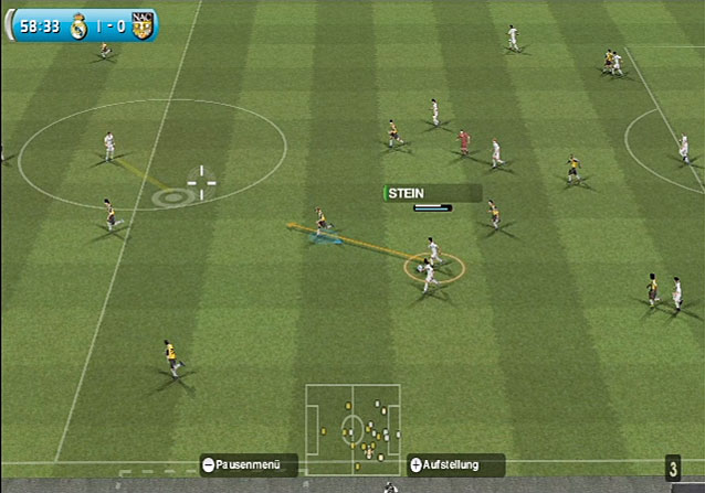 PES auf Wii, das ist taktischer Fußball in Reinkultur: Statt wie von den großen Konsolen gewohnt mit dem Gamepad immer den ballführenden Spieler zu kontrollieren, bestimmt Ihr hier anhand eines Cursors punktgenau, wohin Pässe gespielt werden und zieht Spieler übers Feld wie Icons über Euren Bildschirm. Habt Ihr Euch durch das Tutorial gearbeitet, erschließen sich die Vorteile dieser Kontrollmethode: So präzise Passspiele erlebt man auf PlayStation 3 und Xbox 360 selten. Dafür müsst Ihr aber Abstriche bei Dribblings und Spieltempo machen, denn die Wii-Version spielt sich erheblich langsamer als ihre großen Brüder und lässt keine ausgefeilten Alleingänge zu. Mängel gibt es in der Defensive, die eher passiv agiert und Stürmern gerne den Vortritt lässt, und bei Torschüssen, die auch nach vielen Partien nicht präzise gelingen wollen.