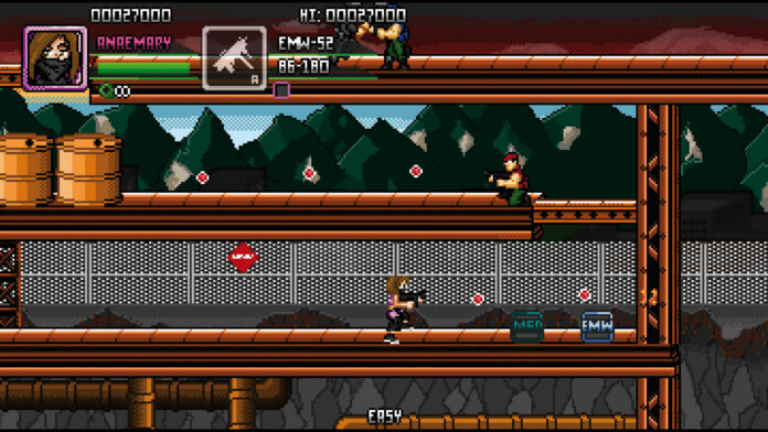 Pixelige Run’n’Gun-Ballerei im 8-Bit-Geiste, die sich arg hektisch und grenzwertig unfair spielt.