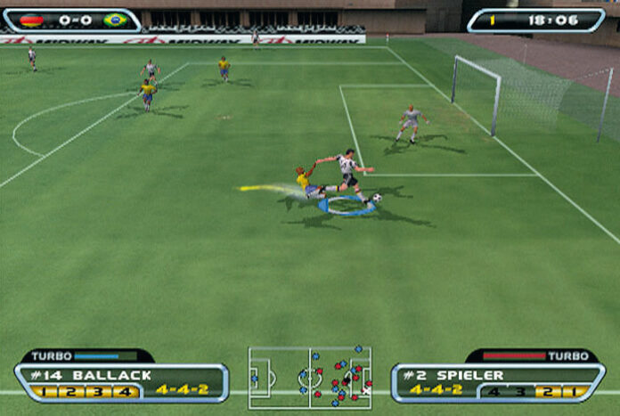 Midway verpasst sämtlichen Sportarten eine Prise Spaß: Nach Basketball (NBA Jam), Football (NFL Blitz) und Eishockey (NHL Hitz) ist mit Red Card nun die europäische Domäne Fußball an der Reihe: Wie es sich für den Rasensport gehört, stehen für jedes Team elf Kicker auf dem Platz und versuchen, das runde Leder ins gegnerische Tor zu bolzen. Allerdings müsst Ihr hier nicht so sehr Rücksicht auf die Gesundheit der Gegenspieler legen, denn bei Red Card drückt der Schiri gerne mal bei Fouls ein Auge zu (auf Wunsch stellt Ihr seine Toleranzgrenze natürlich auch niedriger). Für besonders wüste Tritte bzw. spektakuläre Spezialschüsse im Angriff nützt Ihr auf Knopfdruck einen Energievorrat, der sich danach allerdings erst nach einer Weile wieder auflädt.