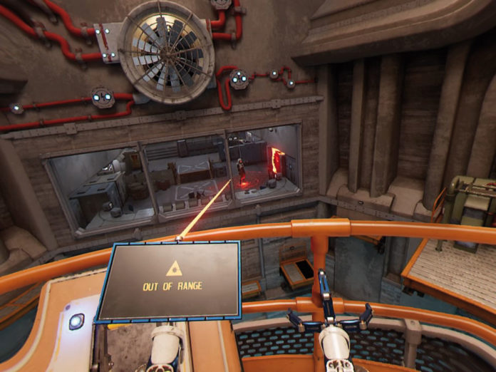 In einer fiktiven Welt, die stark an den Kalten Krieg der USA und UdSSR erinnert und visuell Sci-Fi-Motive mit den 1950er- und 1960er-Jahren mischt, werdet Ihr als westlicher Agent zu einer verlassenen Marsmond-Basis der Republik Volgrovia geschickt, um auszukundschaften, was dort passiert ist. Nach einer Crashlandung erkundet Ihr kurz den Außen- und bald den Innenbereich der Station: VR-typisch betrachtet Ihr die Umgebungen aus der Ego-Perspektive und bewegt Euch wahlweise direkt oder per Teleport und Hüpfer. Interaktion mit Hebeln, Schaltern und anderen Objekten erfolgt mittels zweier Greifarme, die Ihr per Move-Controller bedient – im linken Arm sind außerdem Hilfsmittel wie eine Taschenlampe und vor allem ein Allzweck-Scanner verbaut, der wichtige Details erkennt und Texte übersetzt.