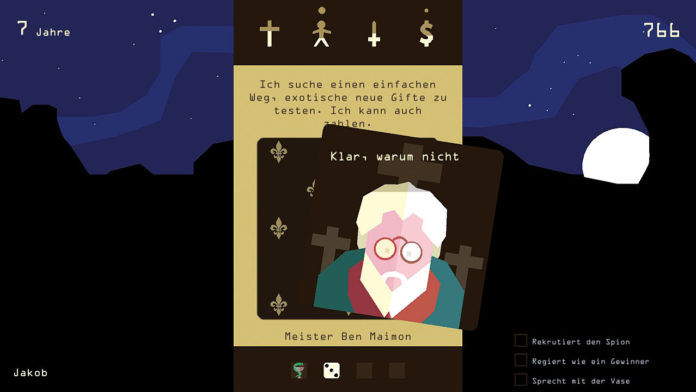 Aufs Wesentliche reduzierte Herrscher-Simulation mit viel schwarzem Humor.
