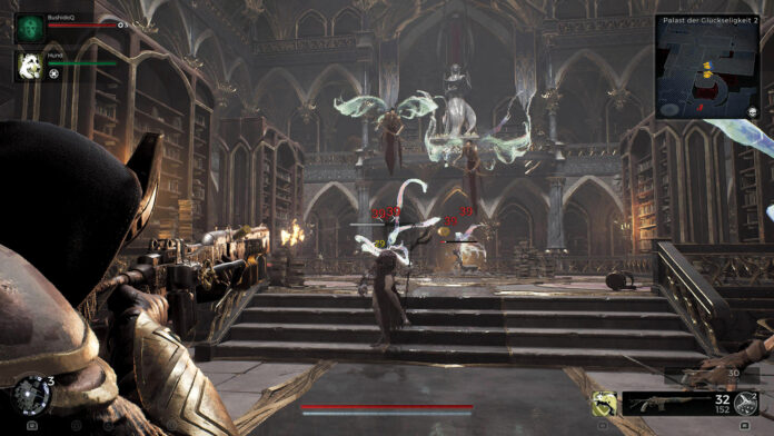 Spannend wird es bei der ersten Nutzung des bekannten Weltenstein-Reisesystems. Im Erstling bestanden die Levels zwar aus prozeduralen Elementen, aber die Reihenfolge von Biomen und Startpunkten war nahezu identisch. Diesmal kann es jedoch sein, dass Ihr Euch zum Start in einer ”Stranger Things”-Einöde mit Aliens und Robotern, in einer Bloodborne-Gasse mit Kettensägen-Verrückten oder in einem glänzendem Dark Souls-Schloss voller Engel befindet.