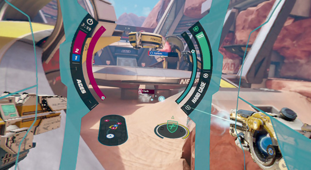 Deshalb entscheidet Ihr bereits beim Tutorial, welche Steuerung Ihr bevorzugt: Drehung mittels Kopf oder Analogstick. Trotz des Arena-Schwerpunkts gibt es einen Solo-Modus, in dem Ihr die Saison-Meisterschaft erringt, unterstützt von fähigen KI-Kameraden. Vier Roboterklassen sorgen für verschiedene Spielweisen: Der schnelle “Hunter” passt durch enge Gänge, wo andere scheitern. Der “Mirage” ist ein Allrounder mit Doppelsprung-Fähigkeit, “Tempest” kann in der Luft schweben, das Schwergewicht “Sentinel” besitzt Auflade-Sprung und Stampfattacke. Mit Punkten erwerbt Ihr Upgrades für Waffensysteme und Fähigkeiten.