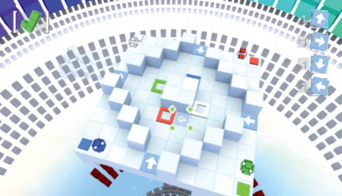In 60 bildschirmgroßen Levels verteilt Ihr Pfeile auf Bodenplatten, um von fixen Startpunkten aus losrollende Würfel kollisionsfrei zu ihren Zielfeldern zu lotsen. Dank Wiederholfunktion erprobt Ihr die Routen beliebig oft und gestaltet sie um, was bei den komplizierten Aufbauten auch dringend nötig ist – denn schnell reduziert sich das Bauen auf ’Trial and Error’-Monotonie.