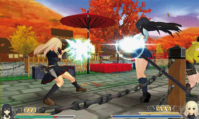 Neu ist dieses Mal, dass Ihr gelegentlich im Team unterwegs seid: Aus diversen Gründen verbünden sich die Heldinnen nun mit ihren Erzfeinden der Hebijo-Akademie, der Handlung folgt Ihr in ausgiebigen, japanisch vertonten Zwischensequenzen. Ein Ninja wird von der KI gesteuert, der andere von Euch, auf Knopfdruck wechselt Ihr durch. Sonst bleibt sich die Serie treu: Mit einfachen Combos verprügelt Ihr das normale Gegner-Kleinvieh – das gestaltet sich oft so simpel, dass Ihr diese Kämpfe durch simples Buttongeklopfe ohne Energieverlust meistert.