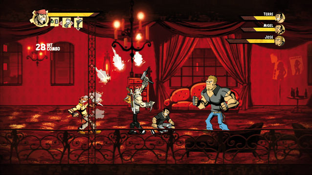 Thematisch eine Mischung aus El Mariachi und John Rambo, spielerisch eine Melange aus Final Fight und Metal Slug, grafisch eine Kreuzung von Comic- und Cel-Shading-Look – was sich wie ein Spiel gewordener Traum anhört, hat seine Schattenseiten. Doch beginnen wir von vorn: Was ist Shank? Ihr scheucht einen prügelnden, schlitzenden und schießenden Wüterich durch eine zweidimensionale Bilderbuchlandschaft. Bereits mit dem Intro hat Euch die Optik in ihren Bann gezogen – trotz der anfangs eintönigen Farbpalette ist die Grafik der größte Pluspunkt von Shank. Knapp dahinter folgt das schnelle Kampfsystem: Mit einfach auszuführenden Knopfstafetten lasst Ihr lässig aussehende Kombos aus Messerstichen, Kettensägenhieben, Machetenhackern, Pistolensalven und Shotgunschüssen vom Stapel, die jedem Actionhelden zur Ehre gereichen. Leider macht Euch das hektische Spieldesign regelmäßig einen Strich durch die Rechnung, denn ständig nehmen Euch kleine Standardgegner in die Zange oder rennen Euch dicke Brocken über den Haufen – unangenehme Erinnerungen an die ins Bild sprintenden dicken Glatzköpfe aus Final Fight werden wach. Auch die Bossfights pendeln zwischen Spannung und Ärger: Mal erfordern die Schufte clevere Tricks und schnelle Reaktionen, mal langweilen sie mit zu offensichtlichen Schwachstellen oder nerven wegen zu vieler Helfershelfer.