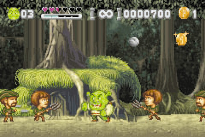 Für den Schuss Abwechslung sorgen die wählbaren Figuren mit dezent unterschiedlichen Fähigkeiten. Zudem gibt’s Abschnitte, in denen Ihr z.B. einen Begleiter schützen sollt. Hört sich nett an und sieht auch hübsch aus – für Jump’n’Run-Fans ist Shrek einen Blick wert.