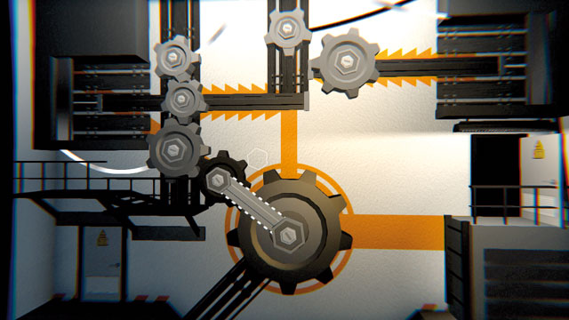 Das ist mal ein wirklich seltsames Spiel: Ihr schwebt durch unbelebte Häuserkulissen und wählt per Analogstick-Cursor aus, durch welche Tür und in welchen Raum Ihr geht. Dort aktiviert Ihr Stromschalter, verbaut Zahnräder und sucht alte Kassetten. Alte Kassetten? Richtig. Findet Ihr einen solchen Tonband-Datenträger, wird der automatisch in Euer virtuelles Kassettendeck TD-525 gesteckt und Ihr in ein komplett anders anmutendes 3D-Szenario gebeamt – das kann eine surreale Flusslandschaft, ein verlassener Highway oder ein Herbstwald (rechtes Bild) sein. Dort müsst Ihr jeweils eine grüne Kugel finden, die in der normalen Spielumgebung als Schlüssel für eine abgesperrte Tür fungiert. So weit, so seltsam…