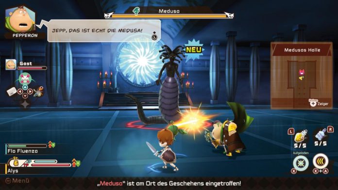 Das vorliegende Switch-Abenteuer ist die Umsetzung eines bereits 2017 in Japan für den 3DS erschienenen Action-Rollenspiels. Habt Ihr Eure Figur erstellt, findet Ihr Euch direkt im Königreich Croquetta wieder. Dort sind Abenteurer immer gerne gesehen – zum einen, weil die verwöhnte Prinzessin Melonia gerne mal die ausgefallensten Wünsche äußert, aber auch weil der fiese Sultan Balsamico das friedliche Reich bedroht. In der Stadt kauft Ihr ein und rüstet auf, ebenso nehmt Ihr dort Haupt- und Nebenquests an, die Euch stärker machen und die Handlung voranbringen. In den Quests erkundet Ihr Wälder, Wüsten, Steppen und manch finsteres Gemäuer – die Levels werden bei jedem neuen Besuch zufällig neu generiert. Egal wo Ihr unterwegs seid, Ihr habt es stets mit zahlreichen Gegnern zu tun.