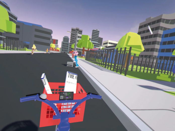VR-Adaption des Spielhallen-Oldies ”Paperboy”, die nicht gut aussieht und sich schlecht steuern lässt.