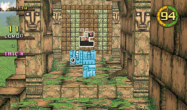 SpeedThru: Potzols Puzzle ist der 3DS-Nachfolger des ordentlichen WiiWare-Titels Thruspace: Wieder geht es darum, dreidimensionale Formen so zu drehen und zu wenden, dass sie durch die Öffnungen einer nahenden Wand passen. Lasst Ihr die Blöcke kurz vor den Öffnungen verharren, streicht Ihr Bonuspunkte ein. Im Vergleich zum spartanisch präsentierten WiiWare-Vorgänger ist Potzols Puzzle viel hübscher: Das neue Azteken-Thema verleiht ein gefälliges Äußeres und die zusätzlichen Spielmodi fesseln länger ans Handheld. Geht es Euch nur ums Durchspielen, werdet Ihr bald alle drei normalen Levels und die vierte Bonuswelt von SpeedThru gesehen haben. Lasst Ihr Euch aber auf die Jagd nach Höchstpunktzahlen und Goldmedaillen ein, dann wird Euch der flotte 3DS-Spaß eine ganze Weile beschäftigen: Zahlreiche Methoden zum Vergrößern des High Scores laden zum Experimentieren ein.