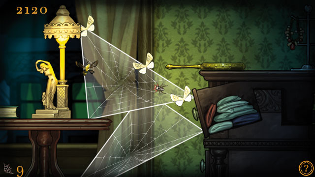 Mit dem Nachfolger zu Spider: The Secret of Bryce Manor feiert der mit Preisen überhäufte Indie-Entwickler Tiger Style sein Konsolen-Debüt: Aus der Seitenansicht steuert Ihr eine Spinne durch abwechslungsreich gestaltete Levels wie Schlafzimmer, Scheune oder Gruft. Lauft nach links oder rechts, springt oder spinnt Fäden. Das Springen und Spinnen funktioniert ähnlich wie das Abschießen der Bazooka in Worms: Haltet Ihr die jeweilige Taste gedrückt, zeigen Euch Pfeile die Flugbahn an, welcher die Spinne beim Loslassen der Taste folgt. So webt Ihr Fäden zwischen Lampen, Statuen, Betten und Wänden – verbindet Ihr mindestens drei Fäden miteinander, in diesem Fall in Form eines Dreiecks, wird die Fläche zwischen den Fäden mit Netz gefüllt. In der Nähe herumschwirrende Schmetterlinge, Mücken und Glühwürmchen bleiben in solchen Netzen hängen, woraufhin Ihr sie verspeisen könnt. Je mehr Insekten Ihr vertilgt, ohne den Boden oder Objekte zu berühren, umso mehr Punkte gibt es. Es lohnt sich also, zunächst mehrere Netze zu spinnen, bevor Ihr Euch die Beute schnappt. Doch Vorsicht: Einige Insekten zerstören Euer Netz, andere könnt Ihr nur durch Anspringen fangen und wieder anderes Getier greift Euch an und reduziert Euren Vorrat an Seide – ist der leer, müsst Ihr ihn durch Fressen wieder füllen, sonst wars das mit dem Spinnenleben. Optional passt das Spiel Wetter und Tageszeit an die Gegebenheiten an Eurem Standort an: Erlebt alle 30 Levels bei Tag oder bei Nacht – mal mit, mal ohne Regen. Das hat nicht nur optische Auswirkungen: Ihr findet andere Insekten, Geheimnisse und Spielelemente vor.
