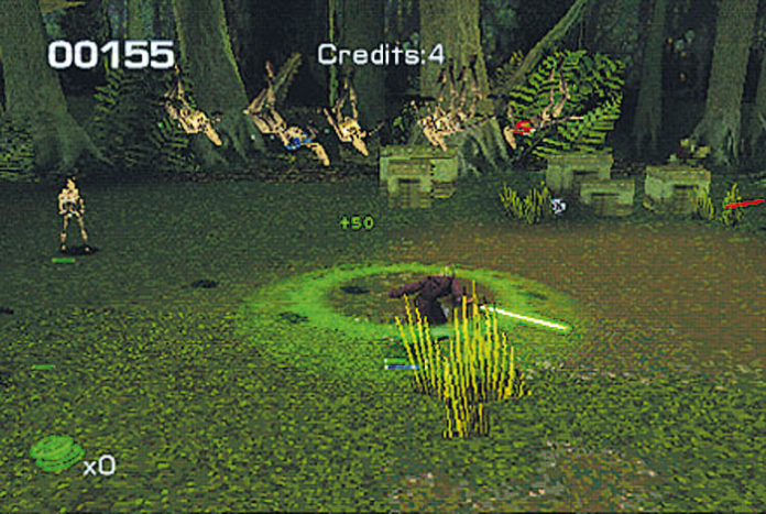 Mit Eurem Helden lauft und springt Ihr die meiste Zeit durch seitwärts scrollende Abschnitte; an einigen Stellen dürft Ihr Euch auch in die Tiefe des Raumes bewegen, wobei die Kamera mit sanften Schwenks und Zooms an Euren Fersen klebt. Als Standardwaffe hat jeder Käm­p­fer ein fluoreszierendes Laser-Schwert im Gürtel stecken: Mit vertikalen, horizontalen und diversen Power-Hieben zer­legt Ihr damit anstürmende Droiden-Horden im Nu; auch das Reflektieren gegnerischer Laser-Salven ist effektiv. Darüber hinaus ist ein waschechter Jedi mit der geheimnisvollen Macht gesegnet – der eine mehr, der andere weniger. So kann beispielsweise Mace Windu auf Knopf­druck sein Laser-Schwert mit der Macht verstärken und durchschlagende Com­bos landen.