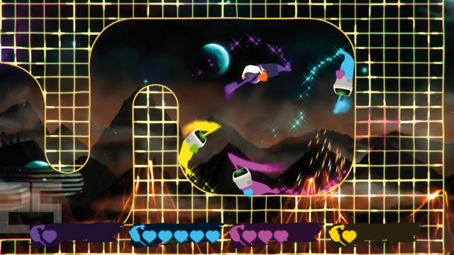Mit der passenden Inszenierung gewinnen selbst die absurdesten Ideen an Charme: Mit dem Stick bewegt Ihr den Kopf eines kosmischen Meeressäugers, per Knopfdruck gebt Ihr in Richtung der Schwertnase Gas. Das ist gewollt unpräzise und macht zugegeben wenig Spaß, wenn man sich nicht drauf einlassen will. Dabei hilft aber eine schrille 1980er-Kulisse mit Neonfarben und Synthie-Gedudel, wie man sie u.a. von Far Cry 3: Blood Dragon kennt. Auch die zahlreichen schrägen Verkleidungsoptionen für Euren Narwal sorgen für Schmunzler. Mit seinen wilden und chaotischen Mehrspieler-Duellen samt Deathmatch & Co. taugt Starwhal vor allem als launiger Partyspaß, die Geschicklichkeitslevels für Solisten fallen dagegen deutlich ab.