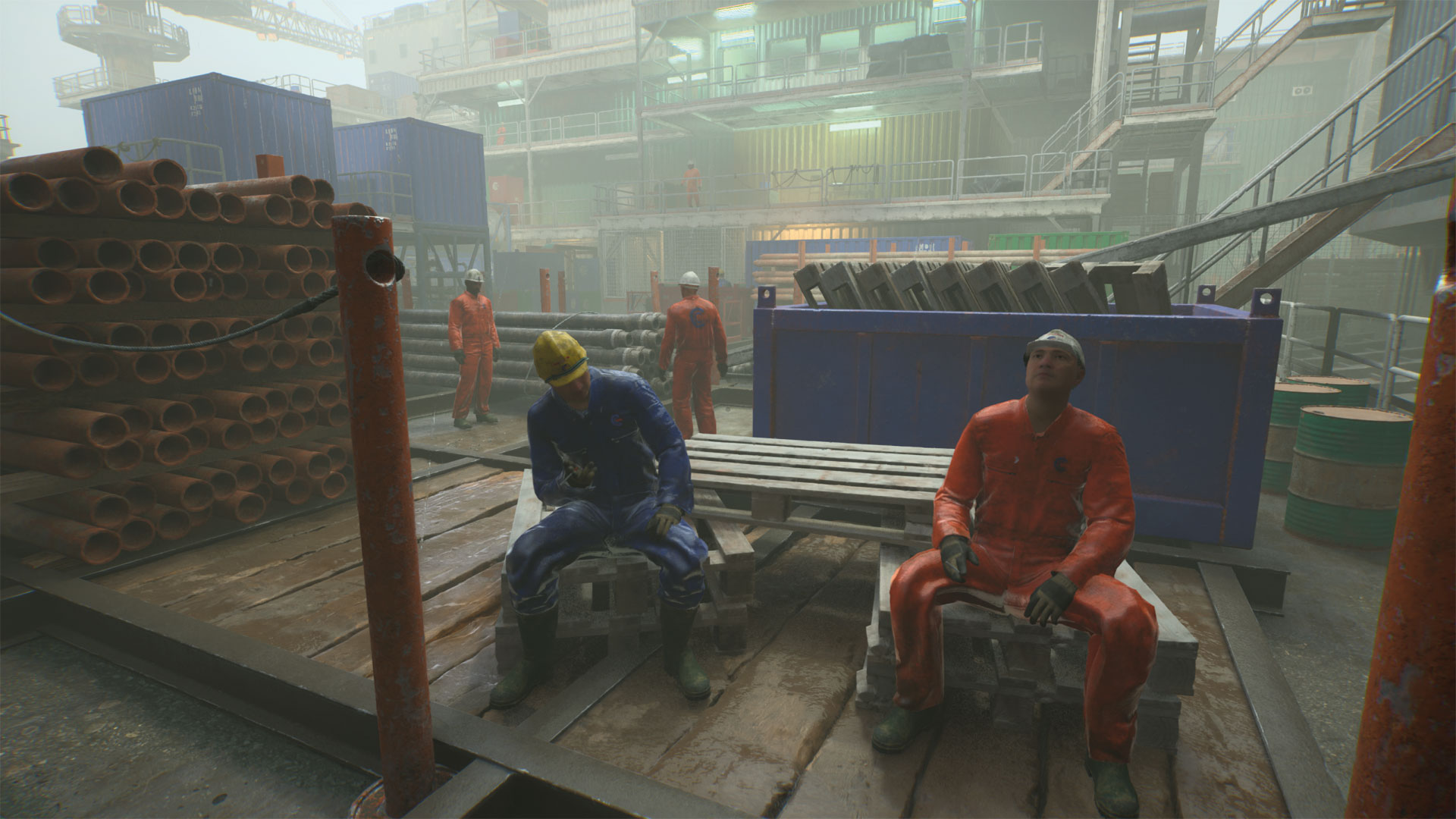 Entstanden ist die Pionierarbeit beim englischen Entwicklerstudio The Chinese Room, das danach unter anderem Everybody’s Gone to the Rapture und zuletzt das schrullige Kosmonauten-Märchen Little Orpheus produzierte und nun mit Still Wakes the Deep mehr oder weniger zu seinen Ursprüngen zurückkehrt. Denn auch das spielt wieder vor der schottischen Küste – diesmal auf einer Bohrinsel Mitte der 1970er – und ist ein ”klassischer” Walking Simulator. Was heißt: Ihr erkundet den Schauplatz aus der Ego-Perspektive und werdet einen vorgesehenen Weg entlang geleitet. Gelbe Markierungen (nach einem Patch auf Wunsch abschaltbar) sorgen dafür, dass Ihr Euch nicht verlauft und erwecken zugleich die Illusion, dass Ihr das überhaupt könntet – in der Regel geht es aber doch fast immer linear voran. Interagiert wird nur an vorgegebenen Stellen per Knopfdruck, selbst halb geöffnete Türen bewegen sich nicht, bevor Ihr die eingeblendete Taste drückt; auch Rätsel im konventionellen Sinn gibt es keine (”Betätige einen Schalter” ist das Maximum). Ein wenig freier geht es nur bei Sprüngen sowie Schwimm- und Schleichabschnitten zu. Letztere erwarten Euch im späteren Verlauf, nachdem ein Unglück paranormale Folgen hat und Teile der Besatzung verwandelt werden. Mehr als diesen vagen Hinweis zur Handlung verkneifen wir uns, ist sie unterm Strich doch der elementare (und eigentlich einzige) Grund, Still Wakes the Deep zu erleben. Leider ist sie nicht so packend, als dass man das Abenteuer als Pflichterlebnis statt ”Kann man mitnehmen” kategorisieren müsste.