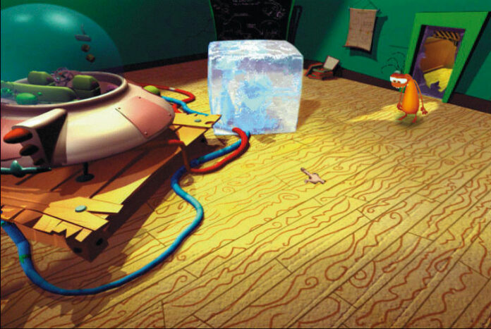 In einer baufälligen Toilette findet Ihr Euch in der Rolle Buds wieder und da die Tür von Bolok blockiert wird, müsst Ihr Euch nach einer anderen Fluchtmöglichkeit umsehen. Wie für ein klassisches Grafik-Adventure üblich, steuert Ihr Euren Charakter mittels Zeiger, der hier als Hand dargestellt wird. Bewegt Ihr diese über spezielle Objekte, so erfahrt Ihr aus bestimmten Animationen, was sich mit dem jeweiligen Gegenstand anfangen lässt. Hält die Hand einen Augapfel, so dürft Ihr z.B. das im Regal liegende saugfähige Papier näher betrachten. Macht sie eine Grapschbewegung, könnt Ihr Dinge wie Klorolle oder Saugglocke einsacken. Hinzu kommen noch die Befehle ‘Benutzen’ und ‘Sprechen’. Hie und da lassen sich mit einem Objekt mehrere Aktionen durchführen – in solchen Fällen wechselt Ihr über Tastendruck durch die verschiedenen Möglichkeiten. Aus der Toilette entflieht Ihr übrigens durch ein höher gelegenes Fenster, wobei Euch die Kombination aus stahlverstärktem Zellstoff und Pümpel gute Dienste leistet.