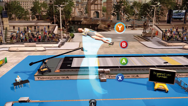Mit 18 Disziplinen ist der Umfang zwar nicht rekordverdächtig, dafür gibt es keine echten Durchhänger: Die Leichtathletik ist durch zehn Wettkämpfe am stärksten vertreten und kostet Euch am meisten Energie, denn zum Laufen wird natürlich kräftig am Joystick gerüttelt – für Sprünge und Würfe ist dagegen gutes Timing gefragt. Auch den anderen Sportarten wie Bogenschießen, Schwimmen, Trampolin oder Fechten wurde eine verständliche und unkomplizierte, aber gut zur Disziplin passende Steuerung verpasst – lediglich die Mountain-Bike-Rennen hätten ein handlicheres Tricksystem vertragen können.