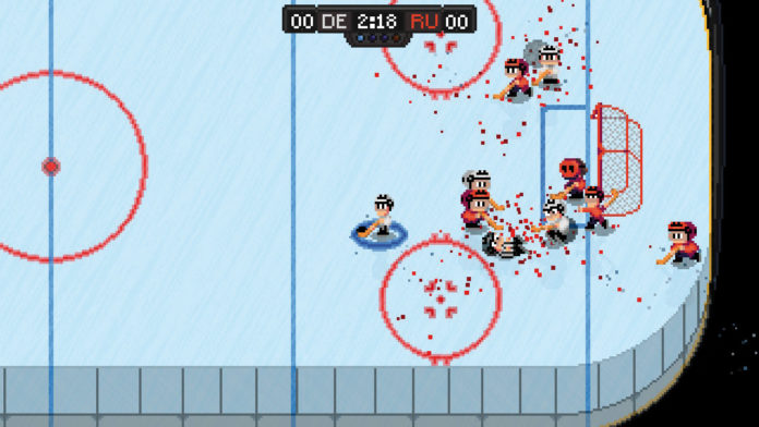 Trotz reißerischem Namen und einem ”Blutregler”, der für noch mehr Pixel-Saft auf dem Eis sorgt, steckt hier ein angenehm traditionelles 2D-Eishockey drin, das der (S)NES-Ära huldigt: Mit wenigen Knöpfen passt, schießt und rempelt Ihr, das Spielgeschehen ist eine gute Mischung aus Wuselchaos und etwas Anspruch.