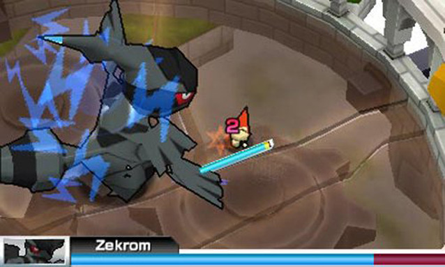 Anfangs beherrscht jedes Pokémon nur eine Attacke, später erlernt es weitere. Da Ihr aber stets nur zwei Manöver gleichzeitig in Eurem Repertoire halten könnt, steht Ihr bald vor der Wahl, ob Ihr für eine neue Aktion eine bereits beherrschte wieder vergessen wollt – da kommt gleich ein Schuss Taktik ins Spiel. Davon abgesehen gibt sich die Vogelperspektiven-Keilerei spielerisch und grafisch eher simpel: Viele Stages meistert Ihr durch reines Knopf-Gehämmer, dazu wirken die Monster-Modelle im Vergleich zu ihren Download-Kollegen im Pokédex 3D ziemlich schlicht. Auch die Bosskämpfe gegen Pokémon im XXL-Format schafft Ihr meistens durch einfache Hit&ampRun-Techniken und mit ein paar Kenntnissen der Element-Eigenschaften.