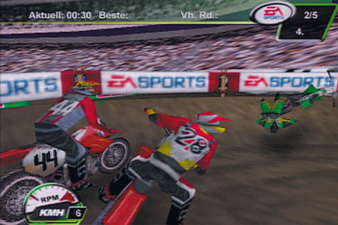 Supercross ist eine Motocross-Variante ohne Natur: Die Rennen finden ausschließlich auf künstlich angelegten Kursen statt, die mit vielen Sprüngen und engen Kurven versehen sind. Supercross 2000 lässt Euch eine amerikanische Profiserie mit 24 lizenzierten Fahrern und 16 Kursen nachspielen. Zum Kennenlernen der Pisten versucht Ihr Euch im Zeittraining oder wagt ein Einzelrennen, bevor Ihr um die Meisterschaft geht. Alternativ ringt Ihr im ’Freestyle’ mit gewagten Stunts um Punkte oder tretet zu zweit im Splitscreen an.