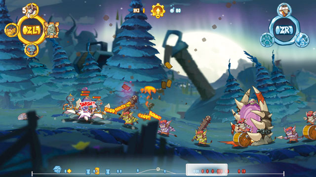 Launige, aber chaotische Echtzeitschlachten in Sidescroll-2D.