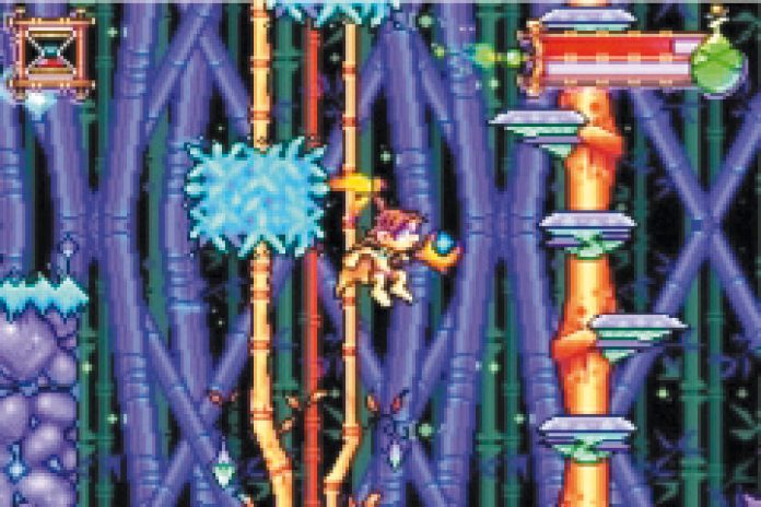 Muss der pfiffige Ureinwohner schon auf PS2, Xbox und Cube dem Stab der Träume hinterherhetzen, ist das wertvolle Relikt nun auch auf dem GBA nicht aufzutreiben. So stiefelt Ihr durch blühende Dschungellevels und muffige Sümpfe, kloppt mit Eurem Holzstab diversen Albtraumkreaturen auf die Mütze und sammelt fleißig Traumelixier. Ist Euer Kessel voll, wechselt Ihr per Schultertaste in die Parallelwelt, wo geheimnisvolle Leuchtkugeln und bisher versteckte Plattformen auf den findigen Tak warten. Dank Zaubertrank erhält der Bursche zusätzliche Buddel-, Sprung- und Rollfähigkeiten – so erreicht Ihr neue Abschnitte.