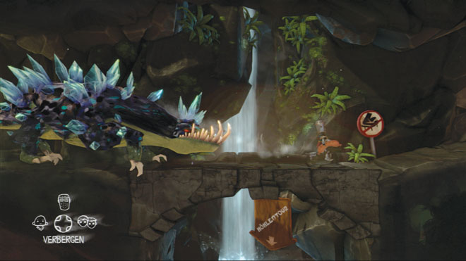 Die Schächte und Etagen der Höhle erforscht Ihr aus der Seitenperspektive: Ihr wechselt laufend zwischen den drei Spielfiguren, weil jede nur ein Item tragen bzw. eine Aktion durchführen kann, z.B. Hebel ziehen oder Bodenplatten drücken. Es gibt zwar keine Gegner, jedoch diverse Persönlichkeiten wie Drache oder König, die es auszutricksen gilt. Wer einen Fehler macht (Stichwort: Stachelgrube), darf wenige Schritte entfernt einen neuen Versuch starten. Natürlich müssen die Helden kooperieren, um die meisten Aufgaben zu lösen: Da werden Ablenkungsmanöver arrangiert, Fallen gestellt und mit gemeinsamen Kräften Hindernisse aus dem Weg geräumt. Neben hüpfen, kraxeln und interagieren beherrscht jede Figur ein persönliches Manöver, das Zugang zu speziellen Abschnitten verschafft: Der Ritter beschwört einen Schutzschild, der Hillbilly kann besonders weit tauchen und die Wissenschaftlerin hackt Terminals, die z.B. Tore öffnen. Abenteurerin und Zeitreisende erreichen per Wurfhaken bzw. Teleportation entfernte Ebenen und der Mönch saugt unerreichbare Objekte per Telekinese herbei.