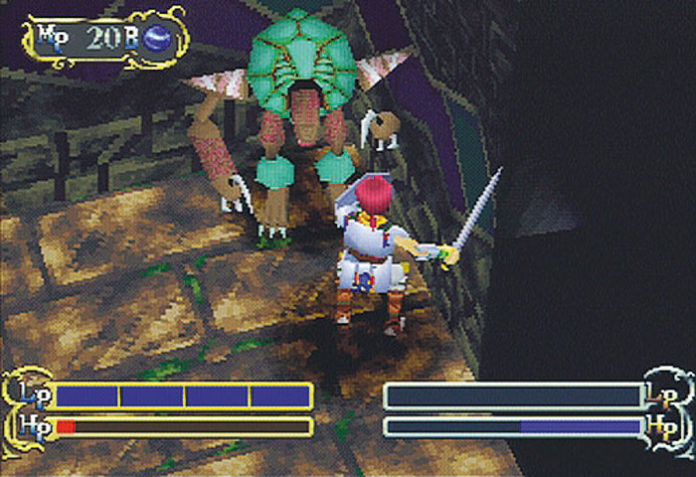 Obwohl alle Dungeons und Dörfer komplett aus Polygonen bestehen, steuert Ihr Eon aus der Vogelperspektive: Nur im Gespräch mit Passanten und in Story-Sequenzen schwenkt die Kamera in ausgefallene Perspektiven und lockert so langwierige Gespräche auf. Im Gegensatz zu anderen Rollenspielen gibt es in Granstream Saga keine Zufallskeilereien: Kampflustige Trolle und Echsen patrouillieren in den Dungeons und greifen erst bei Sichtkontakt an. Mit etwas Geschick schleicht hinter dem Rücken einiger Monster vorbei. Hat Euch eines der Biester entdeckt, zoomt die Kamera nahe ans Geschehen, und Ihr vermöbelt das Ungeheuer mit Magie und Schwert, Feuerregen und Eissturm. Bei Gegenattacken nützt Ihr entweder Ausfallschritte oder das Schild, das unter besonders harten Hieben jedoch zerbricht. Nach dem Sieg verhökert Ihr die Ausrüstung des Monsters, zusätzliche Lebens- und Magiepunkte gibt’s nur nach besonders harten Schlachten oder in versteckten Schatzkisten.