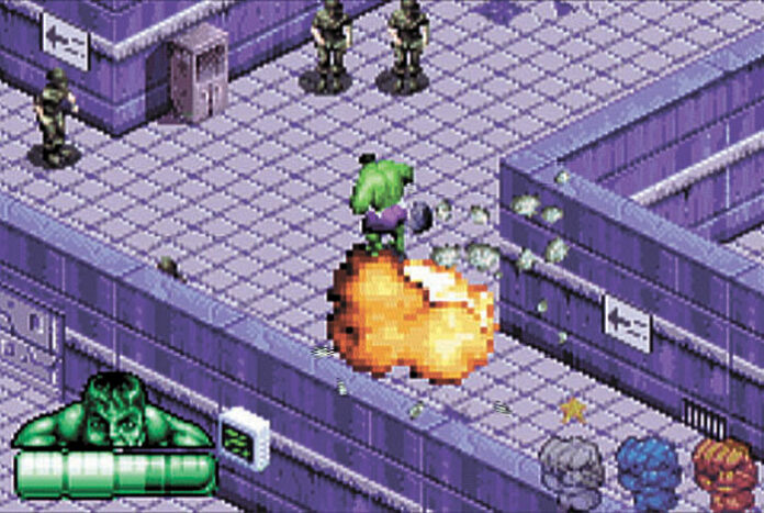 ”The Hulk” total: Neben Kino und stationärer Konsole verwandelt das grünhäutige Ungetüm diesen Monat auch den GBA in ein Schlachtfeld. Aus einer versetzten Draufsicht dirigiert Ihr Euer monströses Alter Ego durch über 30 Levels: Ihr durchstreift kahle Laborkomplexe, gut bewachte Militäranlagen, zerklüftete Wüsten-Canyons und unterirdische Städte.