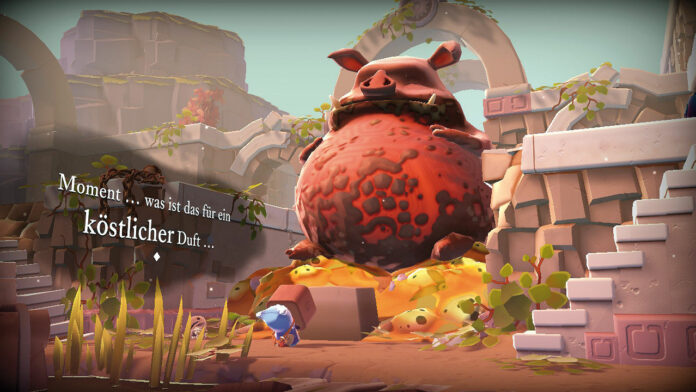 Um diese zu erreichen, helft Ihr erst einmal anderen Waldbewohnern wie dem bärtigen Angler oder einem sehr gefräßigen Schwein. Ihr löst dafür kleine Denkaufgaben, die mal Euer räumliches Denken oder Eure Kombinationsgabe fordern. Habt Ihr erst einmal die hoffnungslosen Steinkissen erreicht, teleportiert Ihr Euch in ihr Inneres und löst ein komplexes Rätsel. Erfreulich ist, dass die Aufgaben trotz einer simplen Steuerung einiges an Abwechslung bieten und keine zu langen Laufwege den Spielfluss stören; so entsteht ein toller Knobel-Fluss. Außerdem trägt die weibliche Erzählstimme, die alle Dialoge spricht, hervorragend zur märchenhaften Atmosphäre bei. Leider müssen wir auch meckern: Die Kamera hat nicht jede Ecke optimal im Blick und die getestete Switch-Version kämpfte außerdem mit ständigen Rucklern sowie kurzen Freezes und sie stürzte einmal ab.