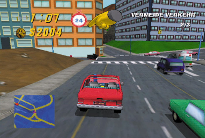 Wie überraschend: Nach Xbox und PS2 wird prompt auch der Gamecube mit dem Crazy Taxi-Verschnitt von Matt Groenings Zeichentrickfamilie bedient. Das Spielprinzip klaut nach wie vor schamlos beim Sega-Vorbild, wie gehabt sammelt Ihr in sechs Ortsteilen Passagiere auf und bringt sie mit Vollgas zu ihrem Zielort, ohne den restlichen Verkehr zu schonen. Bei manchen Fahrten sollt Ihr für höheren Lohn Randobjekte demolieren oder Kollisionen mit anderen Fahrzeugen verhindern, aber das war’s dann auch mit Eigenheiten. Für einen Schuss zusätzliche Abwechslung sorgt ein kurz geratener Missionsmodus und der Splitscreen, bei dem sich zwei Chauffeure um mitfahrwillige Springfield-Bewohner balgen.