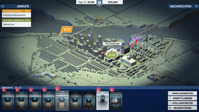 This is the Police beginnt als schick inszeniertes Noir-Drama. Untermalt von klassischer und Jazz-Musik begleiten wir den von Jon St. John (Duke Nukem) englisch vertonten Jack durch seinen Alltag, wählen aus Antwort- und Handlungsmöglichkeiten. Doch leider bleiben diese Adventure-Elemente nicht im Mittelpunkt. Stattdessen müsst Ihr die Polizei leiten, mit allem was dazugehört. Also teilt Ihr Schichten ein, schlagt Euch mit den absurden Vorgaben der Stadtverwaltung herum (”Feuern Sie alle farbigen Mitarbeiter!”) und knackt Bilderrätsel, um Mordfälle zu lösen. Hauptsächlich schickt Jack die verfügbaren ­Ordnungshüter auf einer Übersichtskarte zu in Echtzeit passierenden Verbrechen. Dabei müsst Ihr stets abwägen: Wen und wie viele Beamte setzt Ihr ein, damit niemand zu Schaden kommt? Welche Notrufe ignoriert Ihr? Wie geht Ihr mit der Mafia um? Lasst Ihr den bösen Buben freie Hand, werden die Kollegen nervös. Ignoriert Ihr die Bitten der Cosa Nostra, wird Jack irgendwann erschossen und Ihr müsst einige Tage zurückspulen.