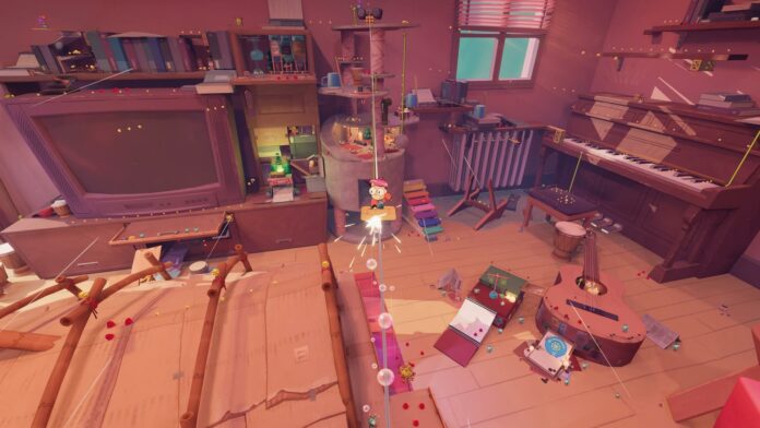Trotz jeder Menge optionalem Sammelkram und ähnlichen genretypischen Aspekten setzt Tinykin eigene Schwerpunkte: So wird auf Kämpfe und Aggression komplett verzichtet, entsprechend gibt es auch keine Obermotze – das schadet dem Wohlfühl-Ambiente nicht, ein wenig vermisst man aber doch Nervenkitzel-Momente. Am wichtigsten sind allerdings die namensgebenden kleinen Wesen, die Ihr in jedem Abschnitt zu Dutzenden um Euch schart: Die Tinykin scheinen nahe Verwandte der Pikmin zu sein, denn Ihr dürft sie mit unkomplizierten Kommandos für Eure Zwecke einspannen. Je nach Farbe können die kleinen Wusler Gegenstände schleppen, Hindernisse in die Luft jagen, Leitern und Wege für Euch bilden oder als lebende Stromtrassen agieren. Das geht in der Regel leicht von der Hand und wird unterhaltsam in die Aufgabenstellungen integriert, auch wenn die im späteren Verlauf hier und da nicht immer eindeutig sind. Mit etwas Geduld und Willen zur Umgebungserkundung kommt Ihr trotzdem in der Regel schnell auf die Lösung.