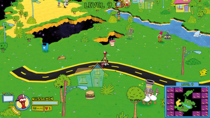 ToeJam, Earl und ihre Freundinnen verschlägt es auf die Erde, wo das Raumschiff zerbricht. Jetzt gilt es, die Einzelteile zu finden und dabei lästigen Erdlingen auszuweichen. Unterwegs findet Ihr Essen und Geschenke: Bei Letzteren wisst Ihr erst nach dem Öffnen, was sich darin befindet – im Random-Modus werden Inhalte und Levels zufällig generiert. Erfahrungspunkte gibt es fürs Finden von Schiffsteilen, das Öffnen von Geschenken und das Aufdecken der Karte. Habt Ihr genug beisammen, lässt Euch der weise Mann im Karottenkostüm einen Level aufsteigen, so erhöhen sich Werte wie Geschwindigkeit, Lebensenergie oder Geschenkpower. Wie die Vorgänger ist auch die neue Episode stark auf Multiplayer ausgelegt: Gemeinsam sucht es sich effektiver und es gibt auch mehr zu lachen. Da ist es gut, dass neben dem obligatorischen Online-Modus auch wieder richtiger Couch-Koop für zwei Spieler mit von der Partie ist.