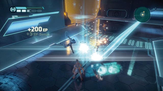 Gekämpft wird gemäß der Filmvorlage mit einem Datendiskus als Wurfwaffe, was gut von der Hand geht, ohne viel Anspruch zu bieten. Nur wenn sehr viele Feinde auftauchen, wird es hektisch und unübersichtlich. Hin und wieder steuert Ihr einen Panzer oder schwingt Euch auf ein Light Cycle und düst durch James Bond 007: Blood Stone-artige Fluchtsequenzen, die sich jedoch als unspektakuläre Tunnelfahrten erweisen.