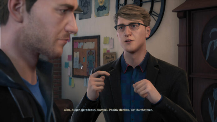 Wie üblich gibt es aber auch einen eigenen spielerischen Kniff: Sam hat eine gespaltene Persönlichkeit, die Euch bei Entscheidungen Ratschläge gibt. Seine innere Zerissenheit erlebt Ihr in nervigen Trial&Error-Segmenten, in denen Ihr den richtigen Weg finden müsst. Außerdem werden Euch Detektiv-Passagen vorgesetzt. Sucht das Gebiet nach Hotspots ab – habt Ihr alle gefunden, dann steigt Ihr auf Knopfdruck in Sams Gedankenpalast und versucht, die Ereignisse mit vorgegebenen Antworten korrekt nachzustellen. Das ist nicht immer offensichtlich, daher heißt es auch hier: ausprobieren und scheitern, bis es passt.
