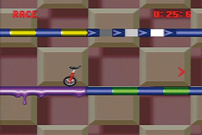 Mit Nintendos Unirally erhalten Polygon-müde Nörgler endlich wieder ein Rennspiel mit ”an­ständiger”, wenn auch un­gewöhnlicher Grafik: Aus der Seitenperspektive steuert Ihr ein Einrad durch acht verschiedene Kurse, die aus je fünf Rennstrecken bestehen. Die ersten vier Kurse müßt Ihr in drei Schwierigkeits-Graden bestehen, um Euch für die restlichen zu qualifizieren. Jede Strecke bietet eine neue Herausforderung: Ihr sammelt Punkte für gekonnte Stunt-Einlagen, heizt gegen den Computer durch einen verzwickten Kurven-Parcours oder versucht, auf einer Berg & Tal-Rennbahn das letzte Quentchen Beschleunigung aus dem Vehikel herauszukitzeln. Die Steuerung ist einfach: Um loszuflitzen, drückt Ihr in Fahrtrichtung, per Feuertaste hebt Ihr kurzzeitig ab und führt dann mit den übrigen Tasten gewagte Saltos und Drehungen aus. Je ausgeklügelter das Kunststück, desto größer Eure Höchstgeschwindigkeit. Profis entdecken geheime ”Mega”-Stunts, der sie Normal-Sterblichen gegenüber unbesiegbar macht. Landet Ihr jedoch mit dem Sattel voraus krachend in der Fahrbahn, müßt Ihr mit der Beschleunigung wieder von vorne beginnen. Umfangreiche Statistiken und Grafiken präsentieren Euch nach jedem Rennen Eure Bestzeiten und den Vorsprung zum Gegner oder die Anzahl und Art der ausgeführten Kunststücke. So erkennt Ihr Eure Schwächen und wißt, welche Aktionen Ihr noch üben müßt, um Eure Fahrtechnik zu perfektionieren. Per Batterie speichert Ihr 16 Spieler und Ihre Qualifikationen. Außerdem läßt sich für jede Rennstrecke eine High-Score-Liste verewigen.