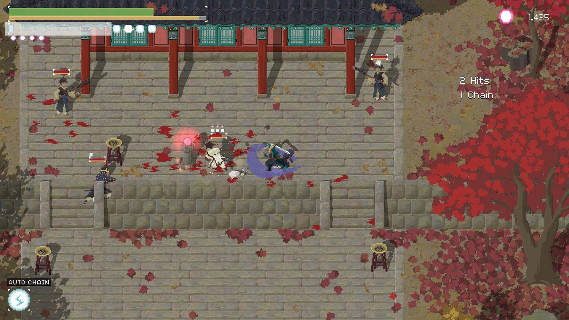 Zwar wurde der Topdown-Slasher von Onimusha 2 inspiriert, aber spielerisch erwartet Euch ein farbärmeres und geradliniges Hyper Light Drifter – es ist ausnahmsweise kein Soulslike, wie der Titel vermuten lässt.