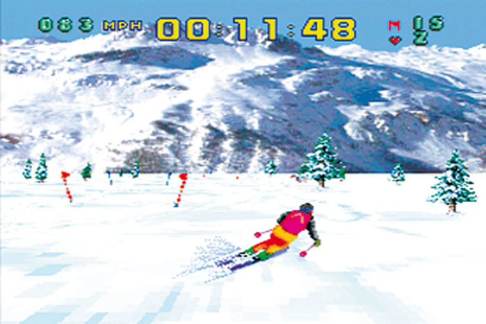 Das französische Skigebiet Val d’Isère ist Wallfahrtsort der europäischen Wintersport-Fans – und auch Jaguar-Besitzer statten dem verschneiten Städtchen einen Besuch ab. In der Umsetzung des Super-Nintendo-Moduls steigt Ihr wahlweise auf zwei Skier oder ein Snowboard. Gelingt es Euch, Slalom, Riesenslalom oder Abfahrt in einer schnellen Zeit zu absolvieren, geht’s auf einer neuen Piste weiter. Rutscht Ihr an einem Tor vorbei, beschert Euch das Reglement Strafpunkt, knallt Ihr gegen einen Baum, legt sich der Sportler auf die Nase. Hindernisse stehen aber nicht nur an der Pistenbegrenzung: Wer Baumstümpfe oder kahle Felsstellen übersieht, segelt dem Gipsbein entgegen.
