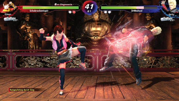 Das Gesamtpaket kommt dabei eher sparsam daher: Zentrale Menüpunkte sind die Online-Kämpfe (mit oder ohne Ranking) und gelegentlich stattfindende Turniere. Aber natürlich könnt Ihr Euch auch lokal verkloppen und für reine Solisten gibt es zum Glück einen klassischen Arcade-Modus mit abschließendem Bosskampf und die World Tour. Bei der bereist Ihr diverse Arcades und Game Center und tretet dort gegen clevere KI-Gegner an, um so Euren Rang zu steigern. Ein Trainingsmodus wurde ebenfalls nicht vergessen. Wer bereits die Vorgängerversion auf PS5 besitzt, der kann vergünstigt zur R.E.V.O. World Stage aufrüsten.