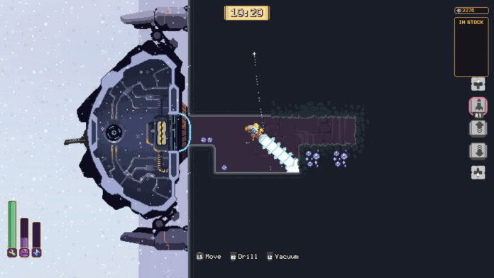 Ihr erkundet eine riesige Mauer, die Ihr mit einer metallenen Riesenspinne vertikal hoch- oder heruntersteigt. Alle paar Minuten müssen feindselige Kreaturen abgewehrt werden. Dazwischen bohrt Ihr Löcher und zieht mit einem kleinen Pixel-Helden los, um Ressourcen ähnlich wie etwa bei SteamWorld Dig abzubauen.